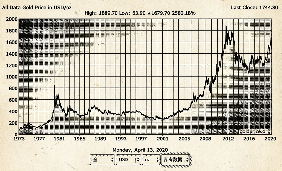你看黄金,1972年的时候,它是46美元一盎司,2020年的时候,它新高到了1744美元一盎司,总共翻了37.9倍,那为啥我们不多造些黄金来满足需求呢?原因就在于黄金的开采量受制于开采技术和花费。如果你做一件事情花的比最后挣的还多,你肯定不干。