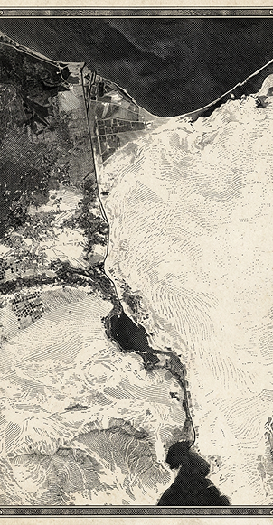 苏伊士运河浩浩荡荡,连结了欧洲与亚洲之间的南北双向水运。自此,船只不必绕过非洲南端的好望角,船队从英国伦敦或法国马赛港出发,驶向印度孟买港,满载黄金、丝绸和香料而归。